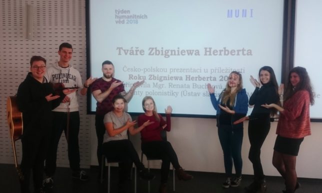 Týden humanitních věd 2018. Multimediální česko-polská prezentace na téma života a díla polského básníka a esejisty u příležitosti Roku Zbignieva Herberta 2018. Přednášející: Mgr. Renata Buchtová, Ph.D. a studenti polonistiky.