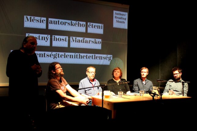 Loni se MAČ v Ostravě věnoval Hlučínsku, letos se pozornost obrací k dalšímu multietnickému slezskému regionu s komplikovanou historií. V pořadu „Na křídlech těšínské orlice“ učinkují přední současní literáti žijící či pocházející z Těšínska. Polská básnířka, překladatelka a polonistka Renata Putzlacher, zakladatelé těšínské revue Weles (dnes vycházející v Brně) Bogdan Trojak a Vojtěch Kučera, polonista a básník Petr Ligocký z Bohumína, redaktor polského vysílání ČRo a básník Jacek Sikora a básník a třinecký knihovník Jan Delong. Foto: Tereza Doležalová.